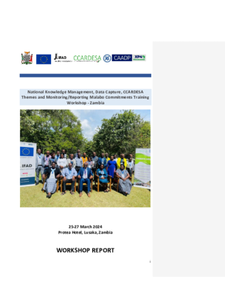 National Knowledge Management, Data Capture, CCARDESA Themes and Monitoring/Reporting Malabo Commitments Training Workshop - Zambia