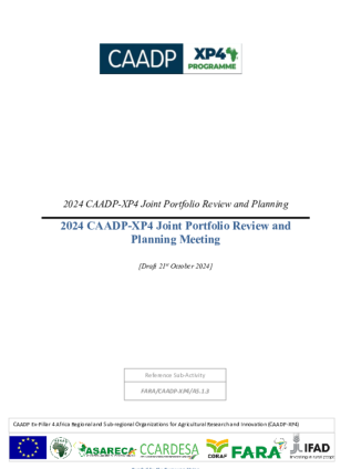 The 2024 CAADP-XP4 Joint Portfolio Review and Planning Meeting, organized by CORAF and held in Saly, Senegal, brought together key stakeholders to assess the progress of the CAADP-XP4 program and to strategically plan for the final year of implementation. Representatives from AFAAS, FARA, CORAF, ASARECA, and CCARDESA gathered to review milestones, identify pending tasks, and discuss new emerging priorities. The focus was on sustainability, agroecology, digitalization, and ensuring that the CAADP-XP4 program’s legacy continues post-closure. This report provides a detailed review of the discussions, key decisions, and agreements made during the meeting, with a strong emphasis on the strategic rationale for requesting a one-year no-cost extension