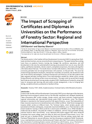 Dlamini C and Dlamini S (2026) The Impact of Scrapping of Certificates and Diplomas in Universities on the Performance of Forestry Sector: Regional and International Perspective. EnvironmentalScience Archives 5(1): 115-126
